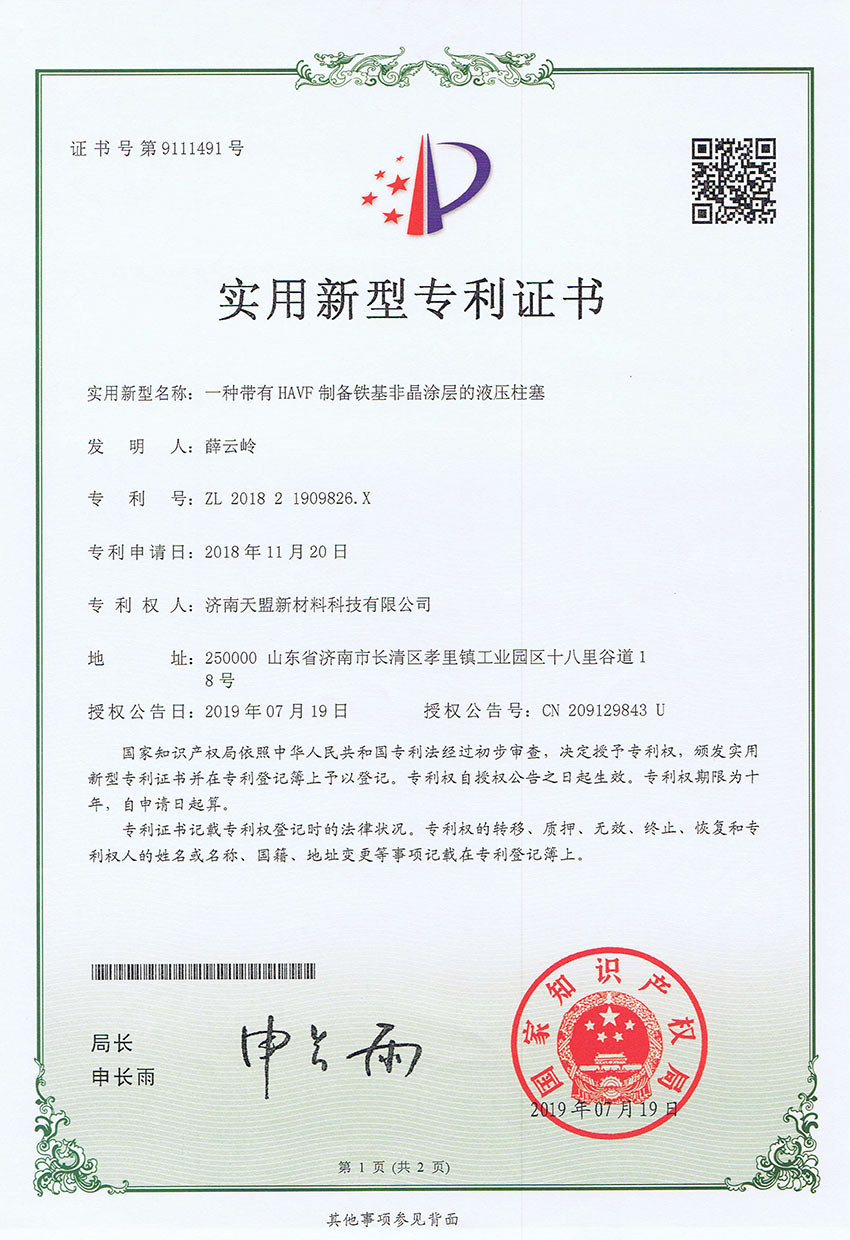 • 一種帶有HAVF製備鐵基非晶塗層的液壓柱塞